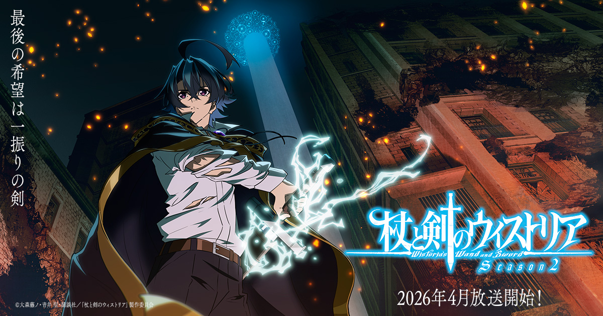 【杖と剣のウィストリア】第2期2026年に放送決定! アニメ放送1周年記念ビジュアル公開 …き出した、TVアニメ『杖と剣のウィストリア』、今後の続報もお楽しみに。 (C)大森藤ノ・青井 聖・講談社/「杖と剣のウィストリア」製作委員会… (出典:アニメージュプラス) |