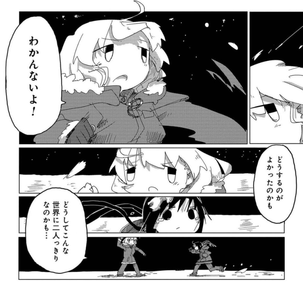 @glt_linesまるで世界に二人しかいないみたいだね (ユーリ, 03話) #少女終末旅行