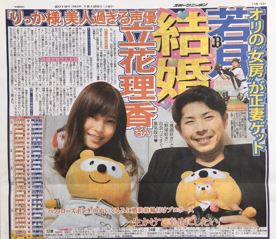 @pirepireuniuni一つ伝え忘れてましたが、侍ジャパンのキャッチャーの一人若月健矢選手は、声優の立花理香さんの旦那さんです
