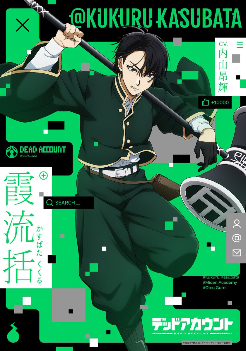 @kaname_hobbyデッドアカウント、この設定は天才!死者のSNSアカウントがデジタル幽霊「化け垢」になって復活って、ネット時代ならではの恐怖でゾクゾクする!新時代の霊媒師バトルアクション、絶対見たい!岡本信彦。 内山昂輝ファイルーズあい花江夏樹Machico鈴木崚汰佐藤拓也